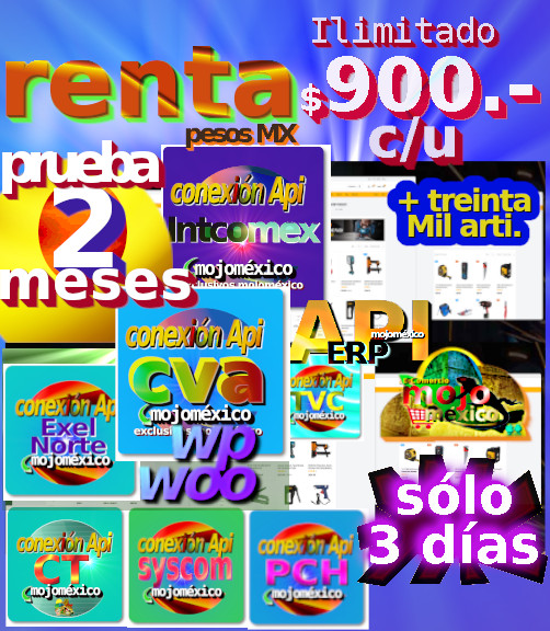 Nuestra API se SYNC roniza con el Almacen de éste y otros Mayoristas y te permite a tí como Distribuidor Publicar los productos con foto, fichas técnicas, stock, sku y precios especiales al Momento sin limite.